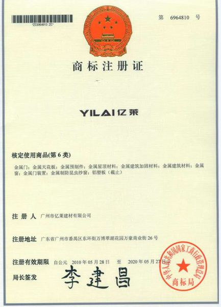 第6類商標(biāo)注冊證
