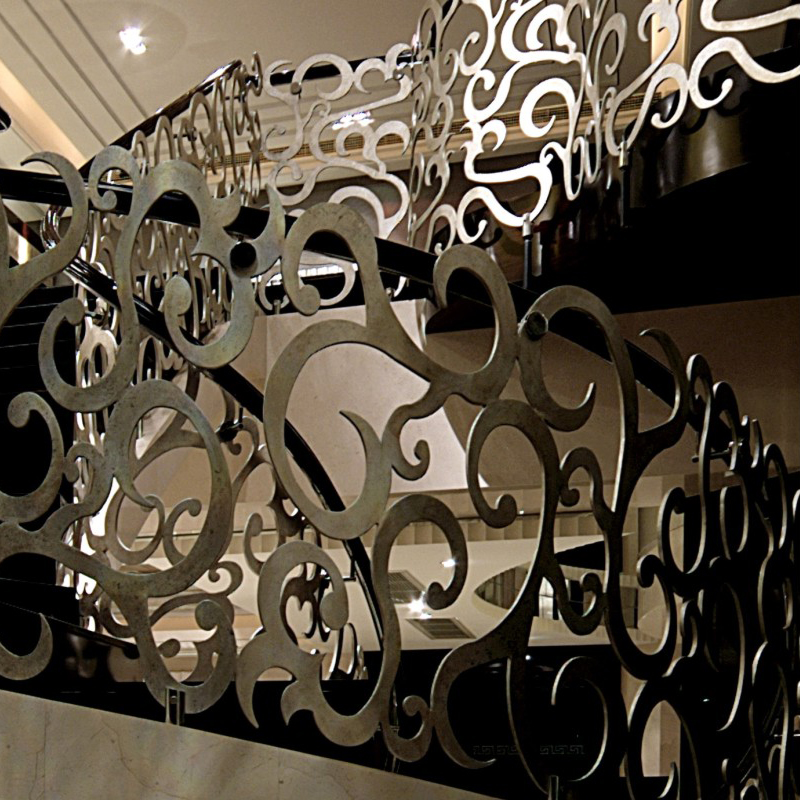 億萊公司產(chǎn)品設(shè)計理念融藝術(shù)文化哲理于一體,以其創(chuàng)新的思維,專業(yè)時尚的設(shè)計風(fēng)格,將現(xiàn)代科技與手工技藝進行完美結(jié)合。新引入金屬鏤空切割技術(shù),將鋁板按設(shè)計師圖形進行水切割,準確性高,不損傷