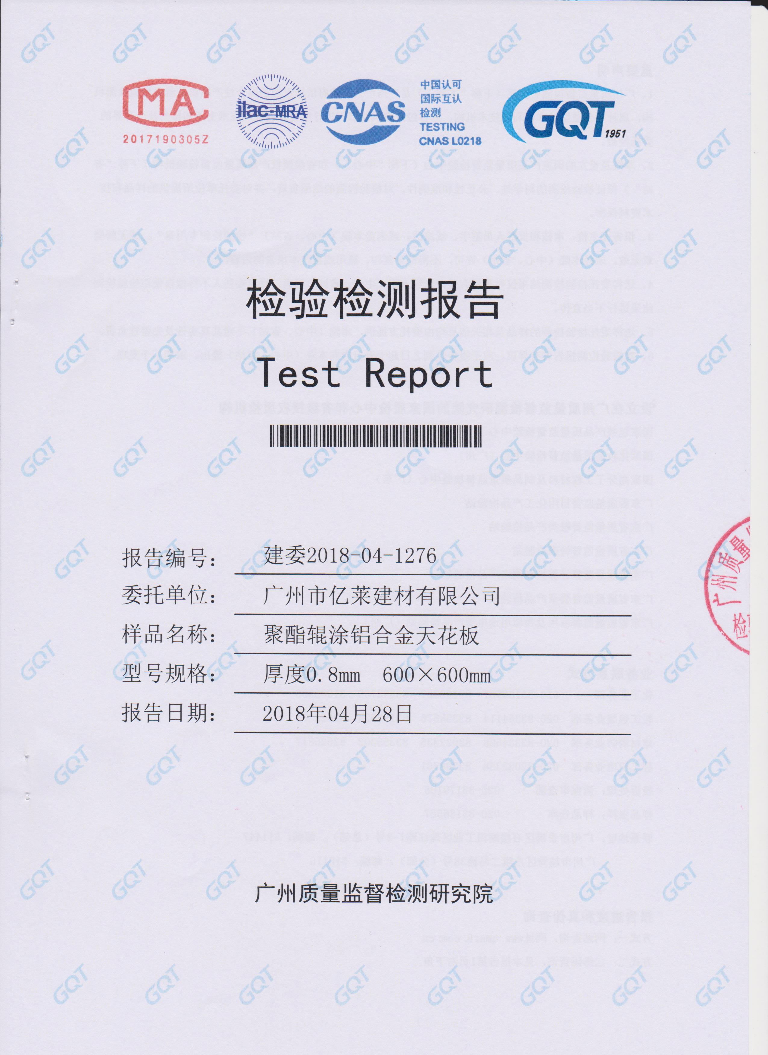 聚酯輥涂鋁合金天花板檢測報告