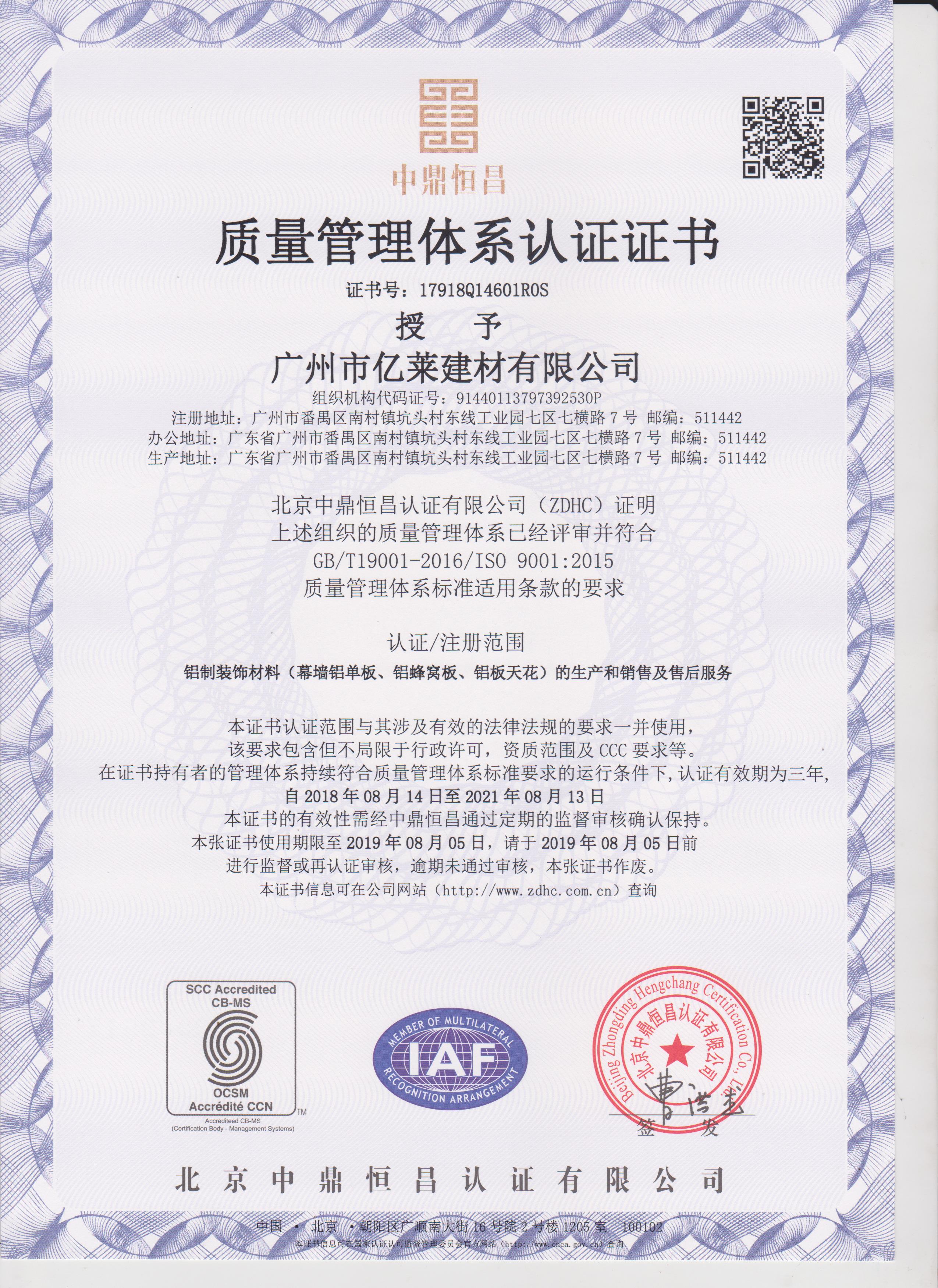 質(zhì)量管理體系認(rèn)證證書(中文版)