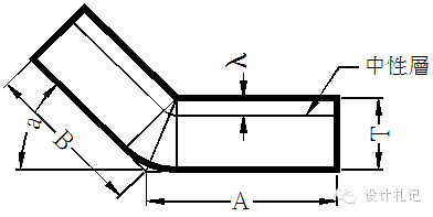 4.5 R≠0 θ≠90° L=[A-(T+R)* tan(a/2)]+[B -(T+R)*tan(a/2)]+(R+λ)*a 當(dāng)R ≧5T時 λ=T/2 1T≦ R <5T λ=T/3 0 < R <Tλ=T/4 |