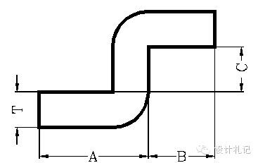 4.6 Z折1. 計算方法請示上級,以下幾點原則僅供參考: (1)當(dāng)C≧5時,一般分兩次成型,按兩個90°折彎計算.(要考慮到折彎沖子的強度) L=A-T+C+B+2K (2)當(dāng)3T<C<5時<一次成型>: L=A-T+C+B+K (3)當(dāng)C≦3T時<一次成型>: L=A-T+C+B+K/2 |