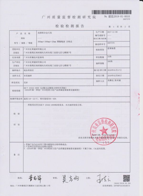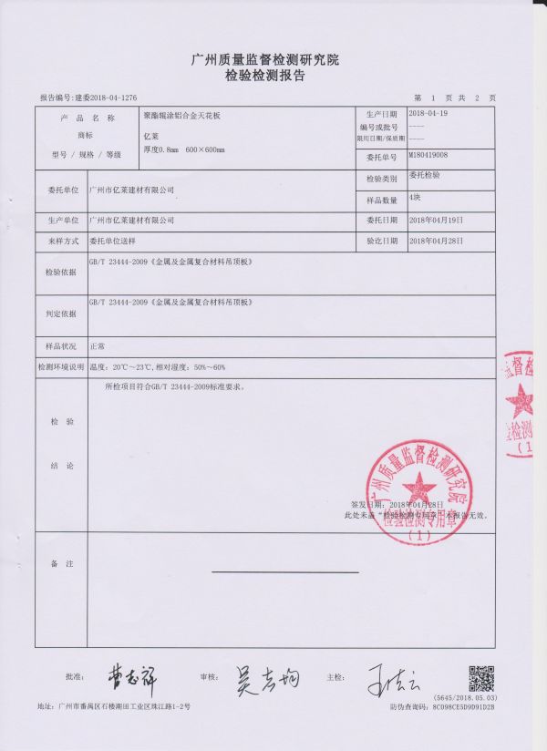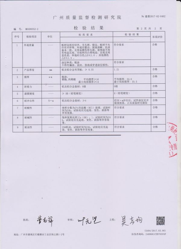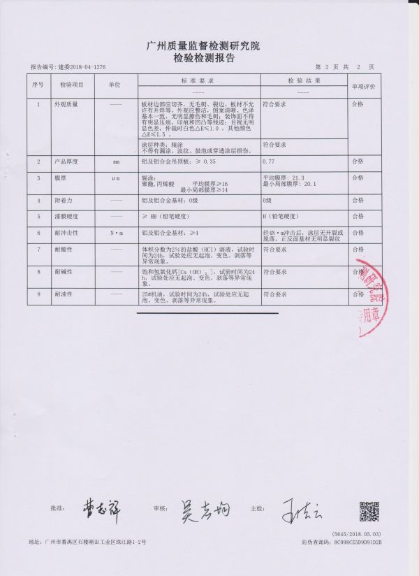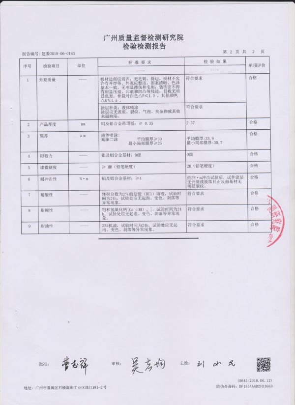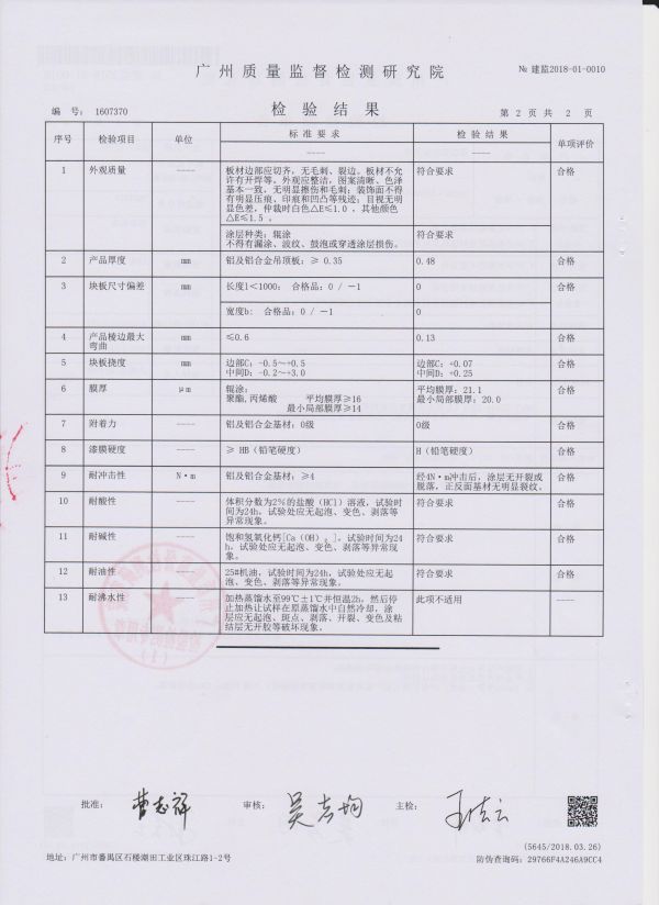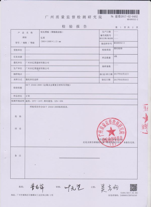 鋁瓦楞板(聚酯輥涂板)檢測報告